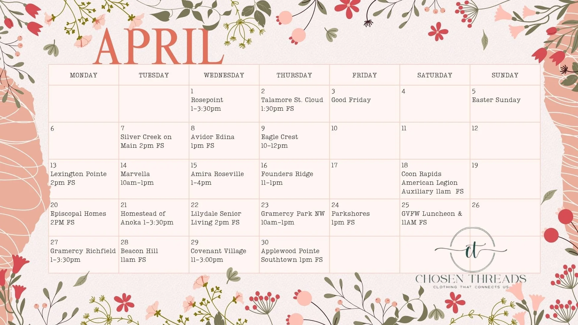 Chosen Threads brings comfort, connection, and style to senior communities across the Twin Cities Metro—from St. Cloud to Hudson, WI, and everywhere in between. We eliminate the hassle of travel and dealing with the nuance of returns by delivering a thoughtfully curated boutique experience right to your doorstep. Residents enjoy personal attention, flattering fashion, and the joy of shopping made easy.